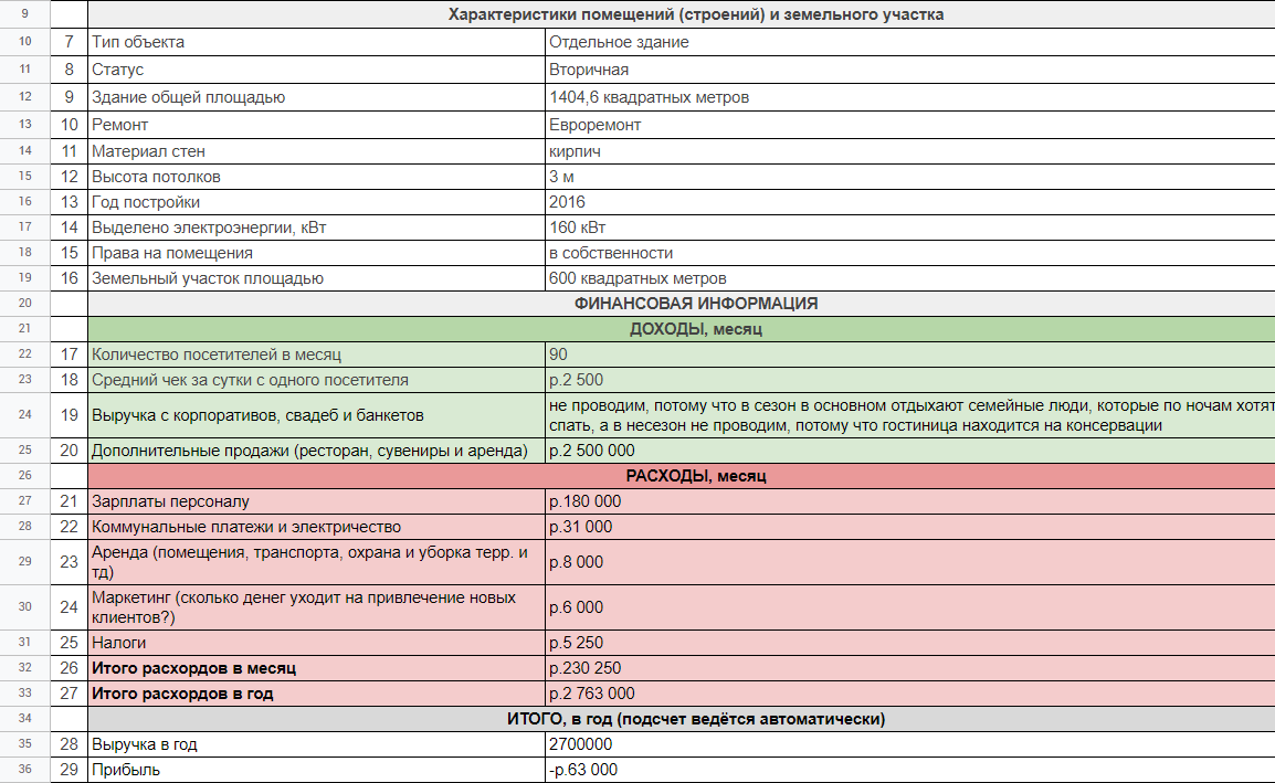 PDF Инвестиционное предложение с подробными данными на объект недвижимости